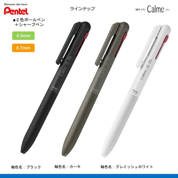 静かなノック感で心地よく使える油性ボールペン ●インク色:黒 ・赤+シャープペン0.5 ●ボール径:0.5mm ●長:147mm ●軸径:18mm ●替芯:XBXS5-A(黒)、-B(赤)、-C(青)