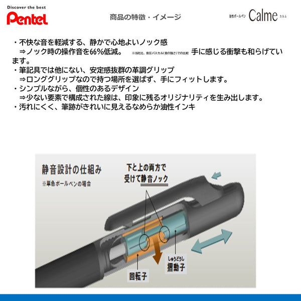 静かなノック感で心地よく使える油性ボールペン ●インク色:黒 ・赤+シャープペン0.5 ●ボール径:0.7mm ●長:147mm ●軸径:18mm ●替芯:XBXS7-A(黒)、-B(赤)、-C(青)