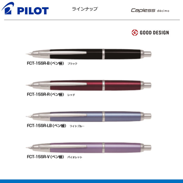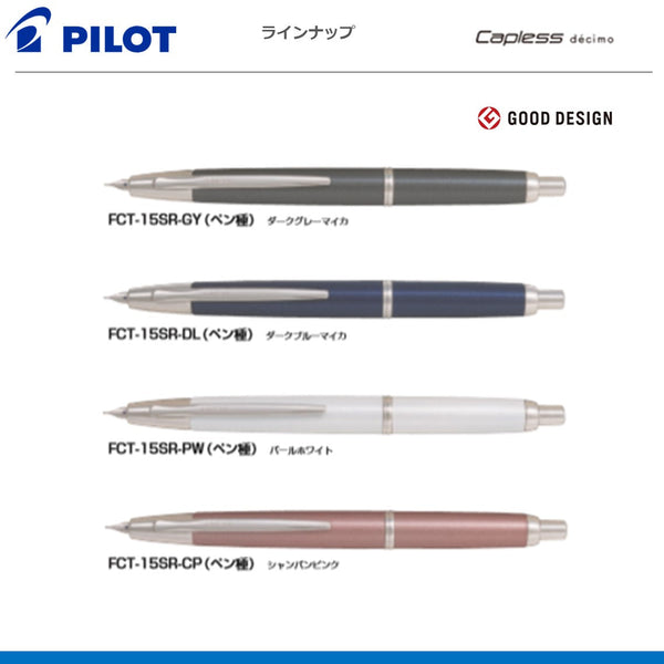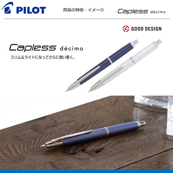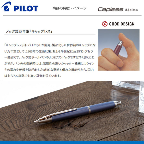 スリムに生まれ変わった10代目のキャップレス ●ペン種:F 18Kノック式 ●軸:アルミ・塗装 ●適合コンバーター:CON-40 ●サイズ:最大径φ12.0mm 全長140mm ●重量:21.0g