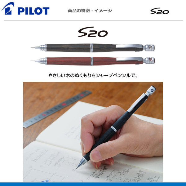 使い込むほど手に馴染む。削り出しの含浸カバ材を利用したシャープペンシル。 ●ノック式 ●芯径:0.3、0.5 ●軸さや:樹脂含浸カバ材 ●替ゴム:HERFS-10 ●サイズ:最大径φ10.8mm 全長146mm ●重量:18.0g