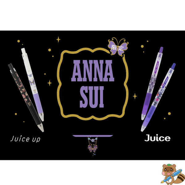 世界的なファッションブランド「ANNA SUI」とのコラボ第2弾 ANNA SUIの世界観をまとった、ゲルインキボールペンの『ANNA SUI×ジュース』 数量限定です。 ●ペン先:0.5mm(極細) ●サイズ:最大径φ 10.3mm 全長 143mm ●軸さや:樹脂 ラバー ●方式:ノック式 ●インキ:水性顔料ゲルインキ ※替芯:LP2RF-8UF/8EF/8F/8M(黒・赤・青のみ)