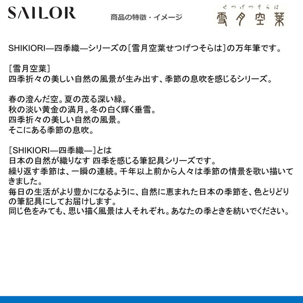 SHIKIORI―四季織―シリーズの[雪月空葉せつげつそらは]の万年筆です。