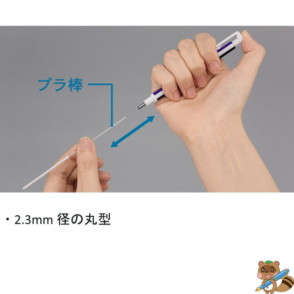 モノゼロ丸型用(EH-KUR)替え消しゴム ●入数:2本 ●本体サイズ:2.3mm径×50mm ●素材:〈消しゴム〉オレフィン系エラストマー ●包装サイズ:幅30×厚さ10×全長150㎜/重量4g ※保管に便利なハードケース付 ※パック入り