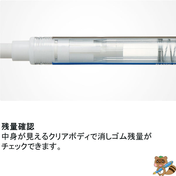 中身が見える透明ボディで消しゴム残量がチェックできます。