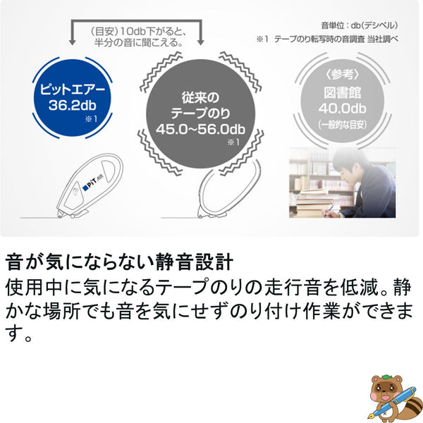 独自機構の「エアタッチシステム」によりテープを切るための抵抗を軽減、最後まで軽い引き心地を実現。